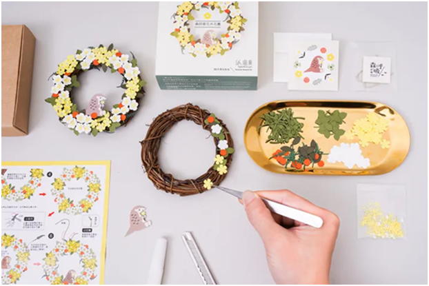 紙模型小花圈 DIY,則讓孩子近距離看見葉片與花卉的輪廓,